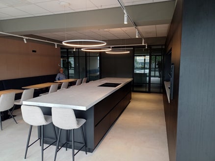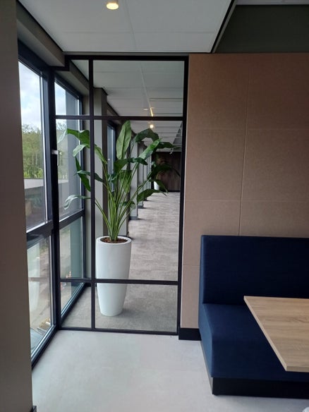 Wat bijzonder om een bedrijfspand dat door mijn vader ontworpen is te mogen verbouwen. De bedrijven die gevestigd zijn in dit pand hebben behoefte aan meer kantoorruimte. De gewenste uitbreiding van deze kantoorfunctie hebben wij gevonden in de aangrenzende bedrijfshal. In deze bedrijfshal hebben wij een grote uitsnede gemaakt om daglicht te laten toetreden. Onder de bestaande stalen liggers was het mogelijk om 3 bouwlagen te ontwerpen zodat iedere gebruiker meer kantoorruimte krijgt. Wel was het een uitdaging om voldoende hoogte te behouden in de nieuwe kantoor maar door de vloerkeuze en het gedeeltelijk in het zicht houden van de installatie zijn we daar in geslaagd.