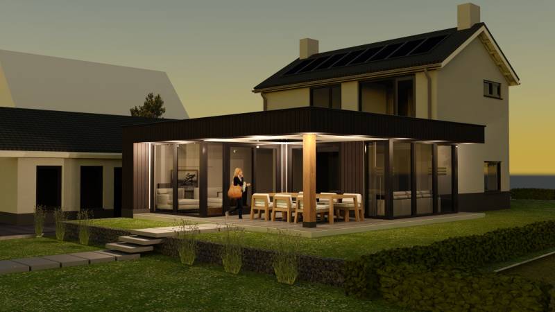 Een bestaand woonhuis dat al meerdere keren is verbouwd terugbrengen tot de kern en uitbreiden zodat een geheel ontstaat. Dat was de wens van de opdrachtgevers, het woonhuis was gekocht vanwege de schitterende ligging en royale tuin. We hebben door een moderne aanbouw er een geheel van gemaakt om optimaal te genieten van het buitenleven.